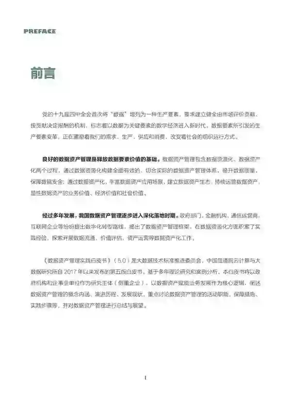《数据资产管理实践白皮书(5.0版)》结合业界数据资产管理先进理念和关注焦点,总结最新实践案例,在《数据资产管理实践白皮书(4.0版)》基础上,聚焦数据资产前沿问题、优化数据资产管理理念,进一步完善数据资产管理框架、明确数据资产管理路径。