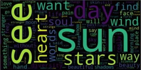 尽管单一的 LSTM 模型在一首诗中并没有完全掌握主题,但它在整个作品的创作过程中似乎都有一个共同的主线。下面是一个从所有单层 LSTM 模型生成的诗词中产生的词云: