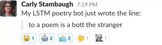 AI 科技评论按:人们已经给神经网络找到了越来越多的事情做,比如画画和写诗,微软的小冰都已经出版了一本诗集了。而其实训练一个能写诗的神经网络并不难,Automattic 公司的数据科学家 Carly Stambaugh 就写了一篇文章介绍如何简单快捷地建立一个会写诗的人工智能。AI 科技评论全文翻译如下。