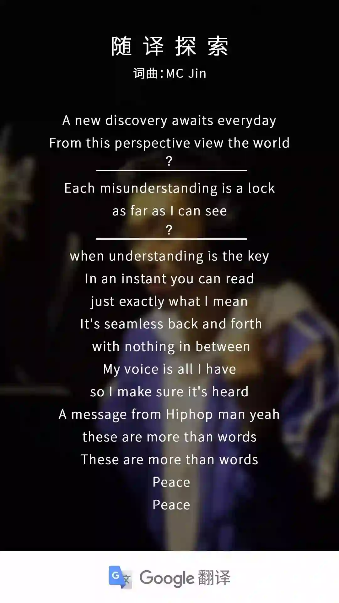 这一次,MC Jin 带来的这一首写给年轻人的新歌,为探索力量发声!