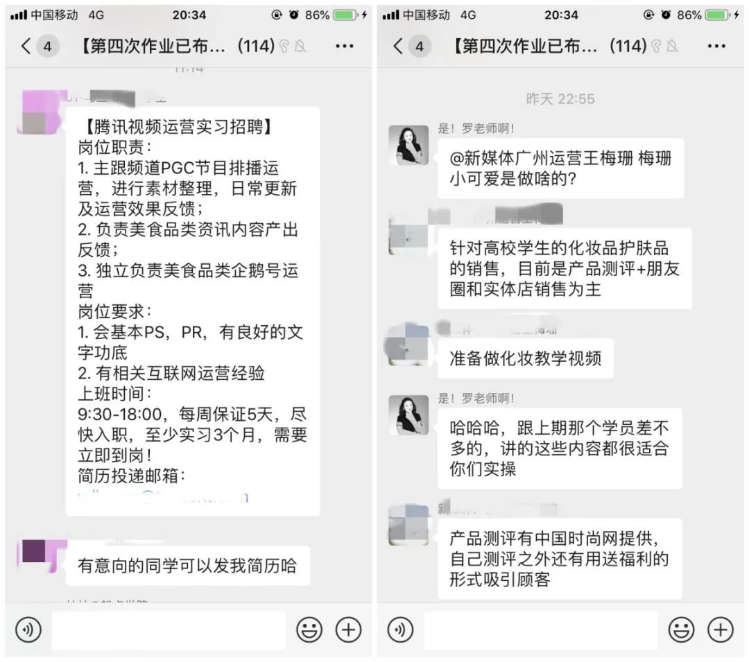 你会遇到来自金融、外贸、美妆等不同行业的新媒体运营同学,通过学习相互认识的同时,还会有大厂内推机会,或者往期学员经验分享等。