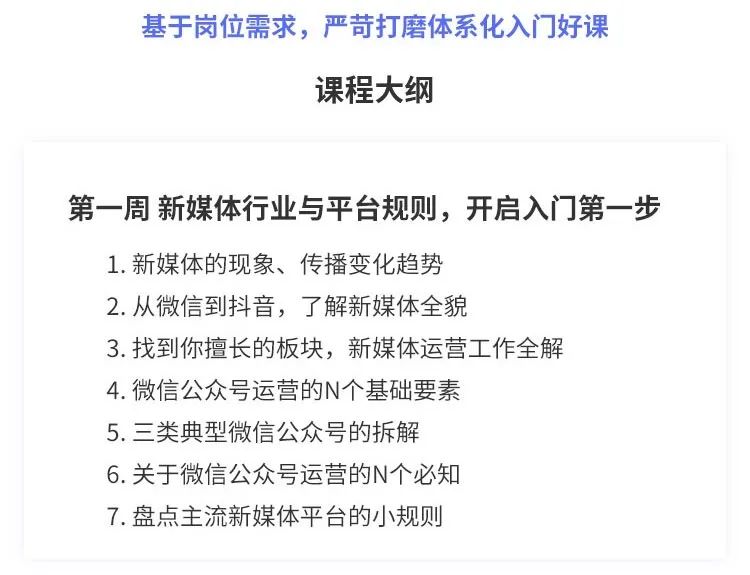 第一周:从传播论到新媒体行业发展趋势、平台规则,建立起系统的运营框架