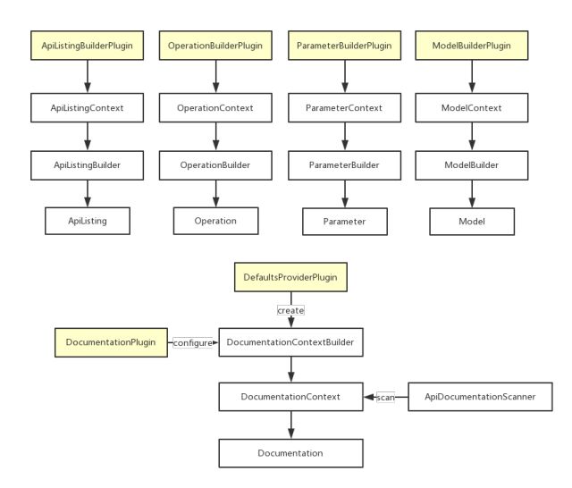 springfox通过spring-plugin的方式将Plugin注册到Spring上下文中,然后使用这些plugin进行API的扫描工作,这里的扫描工作其实也就是构造Documentation的工作,把扫描出的结果封装成Documentation并放入到DocumentationCache内存缓存中,之后swagger-ui界面展示的API信息通过Swagger2Controller暴露,Swagger2Controller内部直接从DocumentationCache中寻找Documentation。