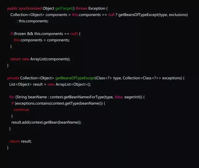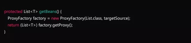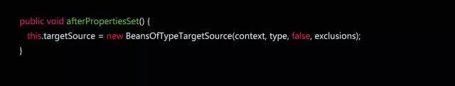 这里的targetSource是在PluginRegistryFactoryBean的父类AbstractTypeAwareSupport(实现了InitializingBean接口)中的afterPropertiesSet方法中初始化的(type属性在PluginRegistriesBeanDefinitionRegistrar注册器中已经设置为遍历的Plugin):