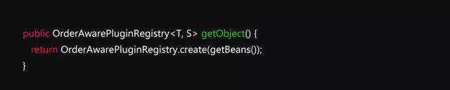 PluginRegistryFactoryBean是一个FactoryBean,其内部真正构造的bean的类型是OrderAwarePluginRegistry。OrderAwarePluginRegistry实例化过程中会调用create静态方法,传入的plugin集合使用aop代理生成一个ArrayList,这个list中的元素就是Spring上下文中所有的类型为之前遍历的Plugin的bean。