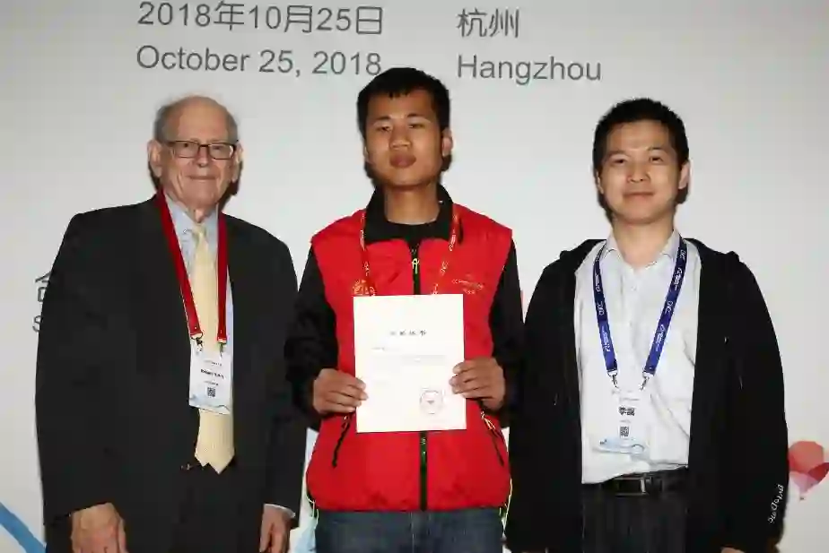 本次参会对我印象最深刻的还是25日晚的“CCF优秀大学生奖”颁奖会,尽管这次颁奖会的规模不大,只对我们72名大学生进行颁奖,地点也只是在一个小的新闻发布厅里面,但参加颁奖会的嘉宾可谓是豪华阵容。在颁奖会开始之前,我并未想到会有这么多业界顶级学者参加颁奖会,让我一饱眼福。在颁奖会进行时,看着颁奖嘉宾给优秀大学生一个一个的颁奖,我心里暗想:如果图灵奖获得者Robert先生能给我颁奖的话,此生无憾。但也只是想想,当时觉得Robert先生可能只是出席一下,并不会作为颁奖嘉宾颁奖。没想到,我小小的心愿真的实现了,Robert先生亲自给我颁奖,我当时内心激动的激动无以言表。在颁奖结束后我也找到Robert先生在我的获奖证书上签名留念,激励我在计算机领域一直走下去,可以向Robert先生看齐,努力学好专业方向的知识,以后得以在相关领域有所建树。