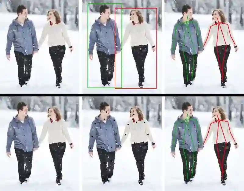 比较简单的方法是先使用一个人体检测器,然后再估计检测器检出的每个人的关节,进而恢复每个人的姿态。这种方法被称为 自顶向下 的方法。