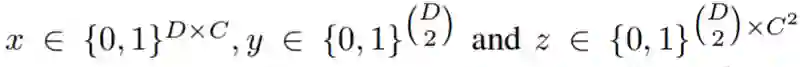 上述几个问题可以被建模为整数线性规划问题(ILP,链接:https://en.wikipedia.org/wiki/Integer_programming),从而被一起解决。考虑二值随机变量的三元组 (x,y,z),其中的二值变量的域如下图所示: