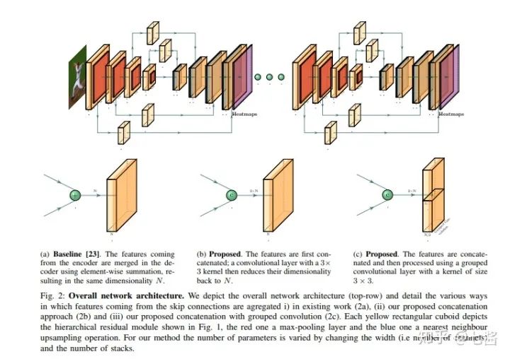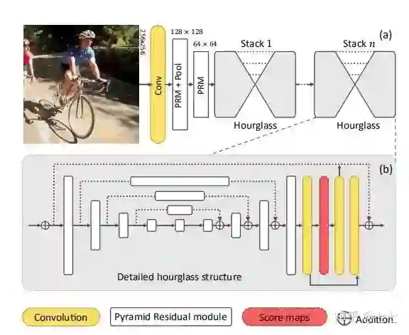 Hourglass模块设计的初衷就是为了捕捉每个尺度下的信息,因为捕捉像脸,手这些部分的时候需要局部的特征,而最后对人体姿态进行预测的时候又需要整体的信息。为了捕获图片在多个尺度下的特征,通常的做法是使用多个pipeline分别单独处理不同尺度下的信息,然后再网络的后面部分再组合这些特征,而作者使用的方法就是用带有skip layers的单个pipeline来保存每个尺度下的空间信息。