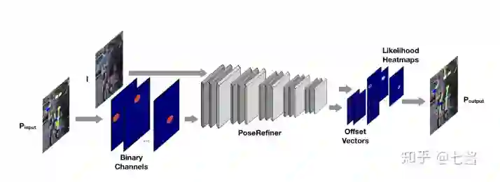 本文提出了训练一个新的模型, 来对某个pose estimation model产生的pose进行修正。文章引入了一种有效的后处理技术用于人体姿势估计中的身体关节细化任务。由于其前馈架构,简单且端到端的可训练,高效的。提出了一个培训数据增强方案纠错,使网络能够识别错误的身体关节预测和学习方法改进它们。