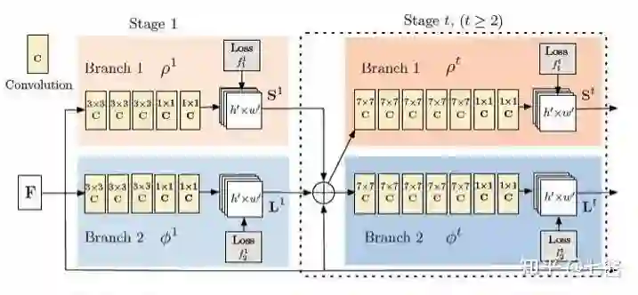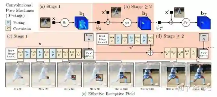 本论文将深度学习应用于人体姿态分析,同时用卷积图层表达纹理信息和空间信息。在2016年的MPII榜单中名列前茅。主要网络结构分为多个stage,各个阶段都有监督训练,避免过深网络难以优化的问题。通过改变卷积核大小来得到多个尺度输入的特征和响应,既能确保精度,又考虑了各个部件之间的远距离关系。其中第一个stage会产生初步的关键点的检测效果,接下来的几个stage均以前一个stage的预测输出和从原图提取的特征作为输入,进一步提高关键点的检测效果。