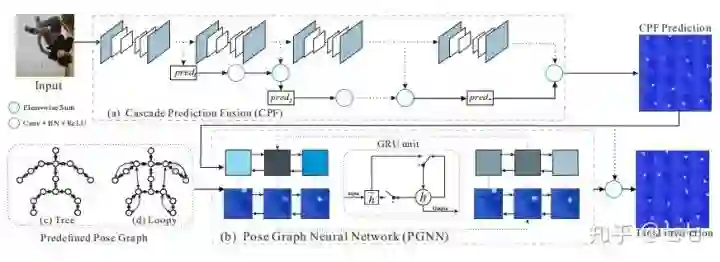 目前大多数网络以多阶段的方式进行训练并加以优化精细。在这个出发点上,作者提出了两个简单但有效的模块,即Cascade Prediction Fusion(CPF)网络用来预测关键点和Pose Graph Neural Network(PGNN), 用来对上级预测的关键点进行修正。