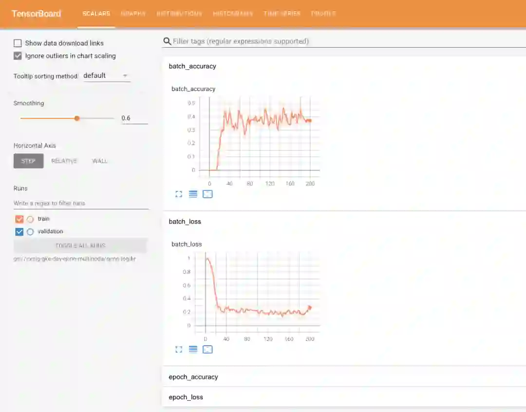 负载平衡器需要花费一些时间来进行预配,所以您可能不会马上看到 IP 地址。预配完成后,请在浏览器中转到 <ip>:5001 以访问 TensorBoard 界面。