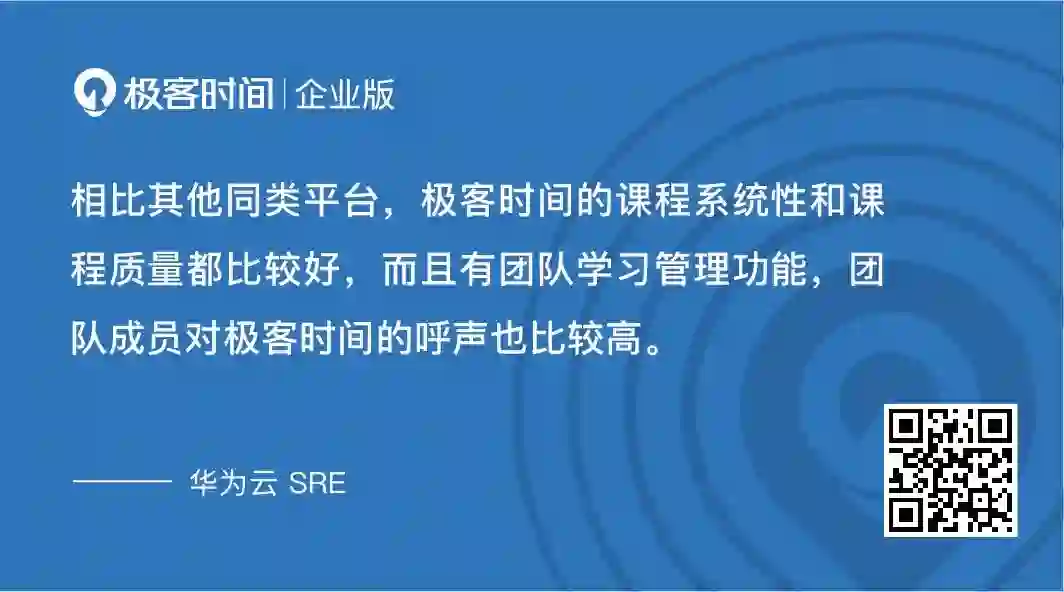 “相比其他同类平台,极客时间的课程系统性和课程质量都比较好,而且有团队学习管理功能,团队成员对极客时间的呼声也比较高。”华为云 SRE 架构师王海宇评价。