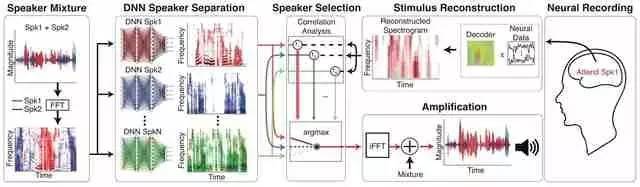 对此,Mesgarani解释道:“这项工作结合了两门学科的最新技术:声学工程和听觉注意力解码。我们只要加入深层神经网络模型来帮助自动分离语音信号,整个系统就可以运用起来。”