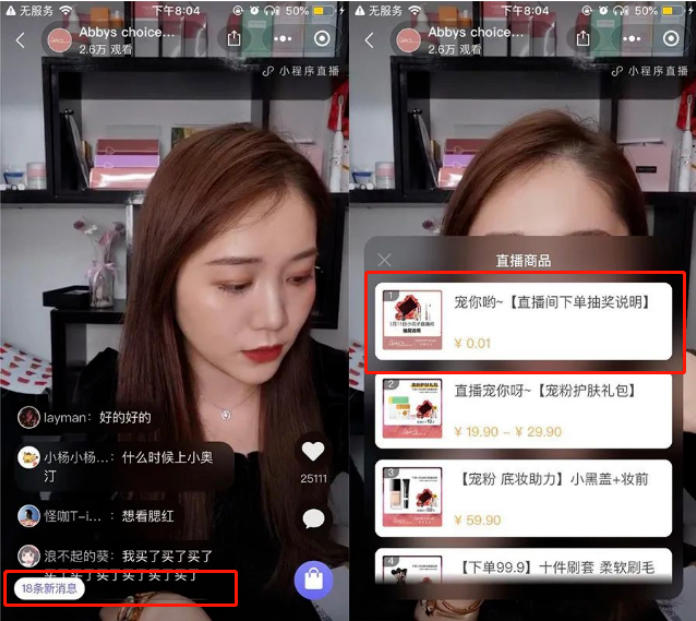 相比其他平台直播,小程序直播最大的特点就是可以在借助微信关系链快速传播,所以主播可以通过一定手段刺激粉丝分享直播间,比如直播间满**人可送**,解锁某款产品的低价——既能号召用户分享互动,又能刺激用户下单。