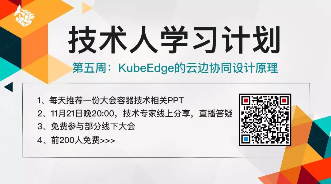 3、技术专家不定期线上分享,关于容器技术,也关于程序员的职业思考。下一次分享时间 11 月 21 日(本周四)晚上 20:00,关于 KubeEdge 的云边协同设计原理。