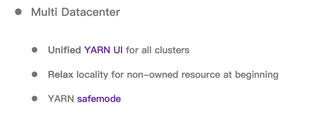 异地多活:包括统一的 YARN Client 和 UI 等内容。