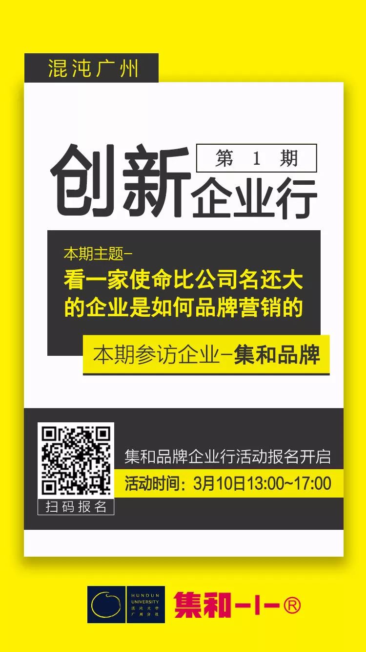3月10日下午,混沌大学广州分社将携手集和集团举行企业游学活动,学习优秀企业管理文化理念的同时,对混沌大学创新院课程现场进行“刻意练习”,活动报名开启,等你来参加。