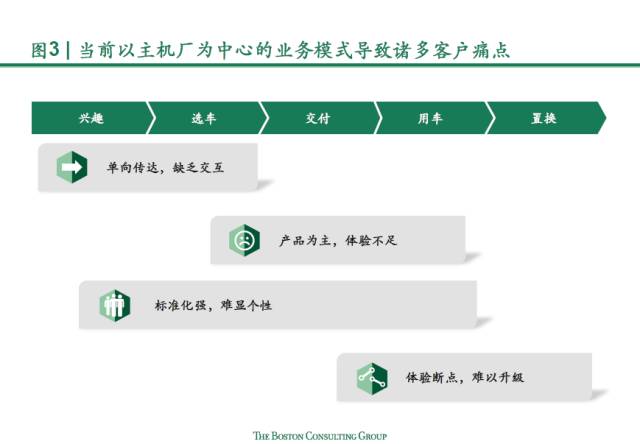 近期,BCG与国内某主机厂联合举行了一次围绕中国汽车消费者全生命周期的体验调研,结合以往的行业经验和消费者洞察,我们发现中国的汽车用户从兴趣、选车、交付、用车到置换过程中面临的痛点可以归结为四大类: