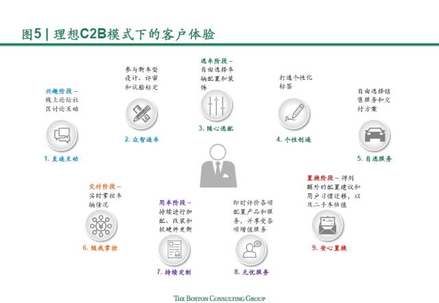 回到汽车行业,理想的C2B体验应该贯穿用户从兴趣、选车、交付、用车到置换的整个价值链。从产品到服务,全方位地做到以客户为中心,通过直联、互动、快速的沟通发掘并最大化满足客户的直接和潜意识需求。