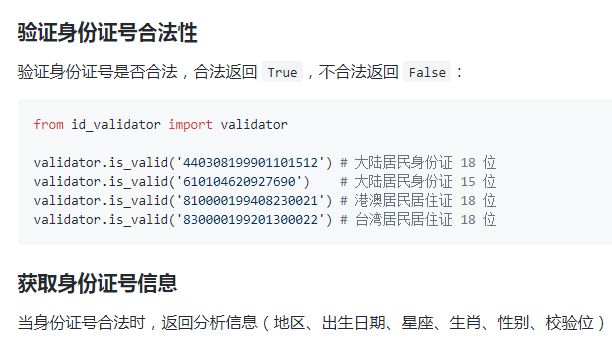 可以用来验证身份证号合法性、获取身份证号信息、生成可通过校验的假数据、身份证升级。