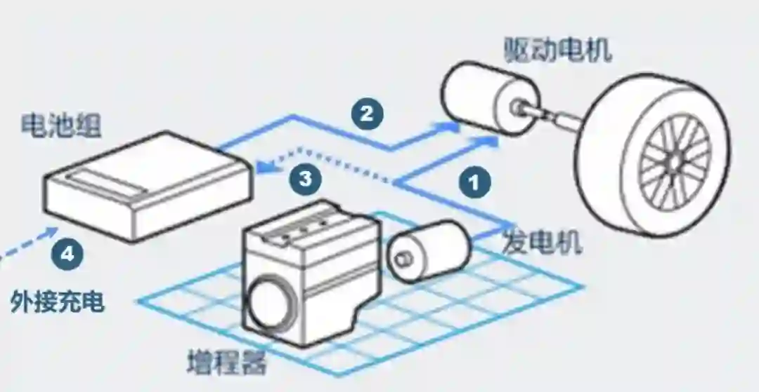 尽管都可以实现零里程焦虑,但两者的工作逻辑和特性却存在明显差异。其中,增程式系统采用的是串联结构,车轮只能由电动机驱动,发动机(增程器)仅用来带动发电机供电。得益于该结构将发动机和车辆行驶系统硬件解耦,也就可以对发动机进行针对性的设计和调教优化,使其恒定在热效率最优的转速运行。相比燃油车发动机转速不断波动的运行工况,燃油经济性有明显提高。