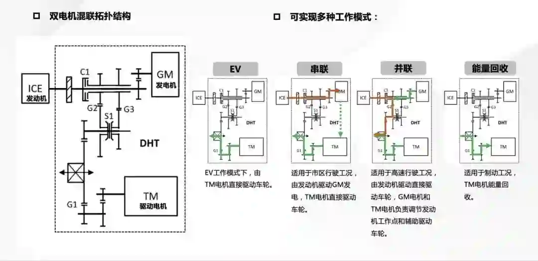 北京航空航天大学汽车工程系教授、国家乘用车自动变速器工程技术研究中心常务副主任徐向阳曾表示:「DHT 专用变速箱开发工作要从三个方面着手,第一,构型方案的原始创新;第二,变速器在动力系统中的匹配;第三,能量流的有效管理。」