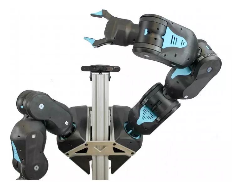 技术参数方面,BLUE 机器人具有两只人类尺寸类似、运动方式也类似的手臂,每只手臂有 7 个自由度,载荷为 2kg。机器人的设计位姿控制带宽为 7.5Hz,重复定位精度不大于 4mm,这样的运动特性已经逼近甚至超过了人类操作人员的水平。机器人可以根据人类的演示学习(Learning from Demonstration),也可以以强化学习的方式学习。