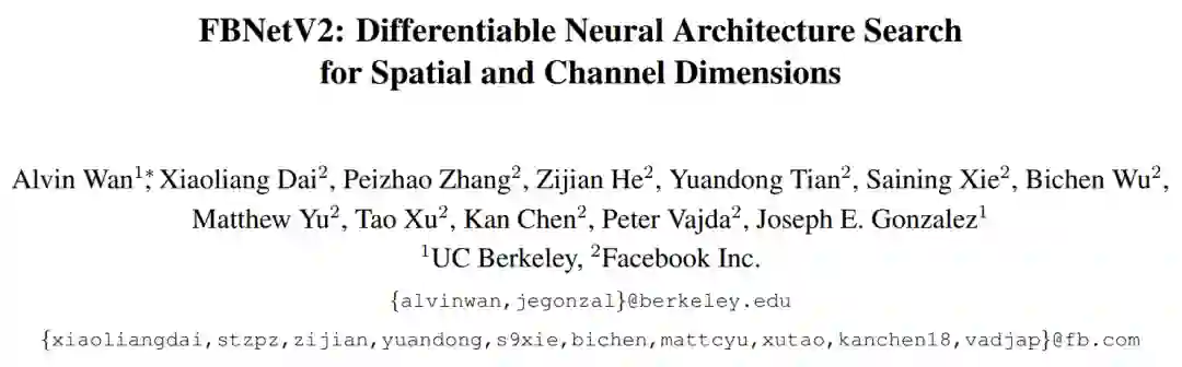 今天介绍一篇 Facebook 工作 FBNet 的升级版本 FBNetV2: Differentiable Neural Architecture Search for Spatial and Channel Dimensions。