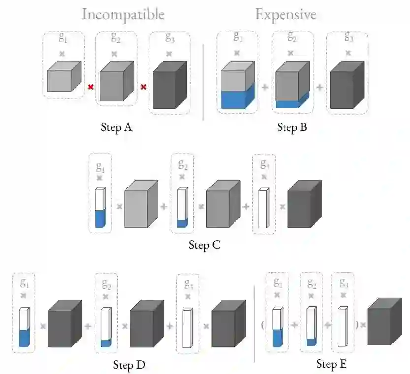 想要进行加权和,首先就会遇到上图 Step A 中的问题:channel 不同,对应的 tensor shape 不用,无法直接相加。为了解决这个问题,可以引入 Step B 中的方法:对输出做 zero padding,使之shape 对齐(也就是图中蓝色部分),然后就可以加权和了。Step B 和 Step C 是等价的。Step C 相当于对卷积的 filter 进行 mask。随后作者又进行了一个简化的假设,假设所有的 weighting 共享,也就是 Step D 的形式。Step E 和 Step D 是等效的,即为最终的 channel masking 机制。