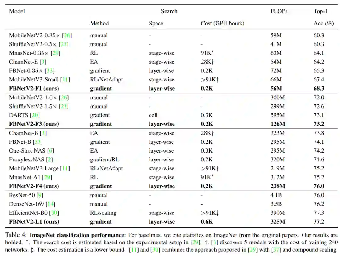 这三个系列最后搜出来的结果,在 ImageNet 上的结果如下表: