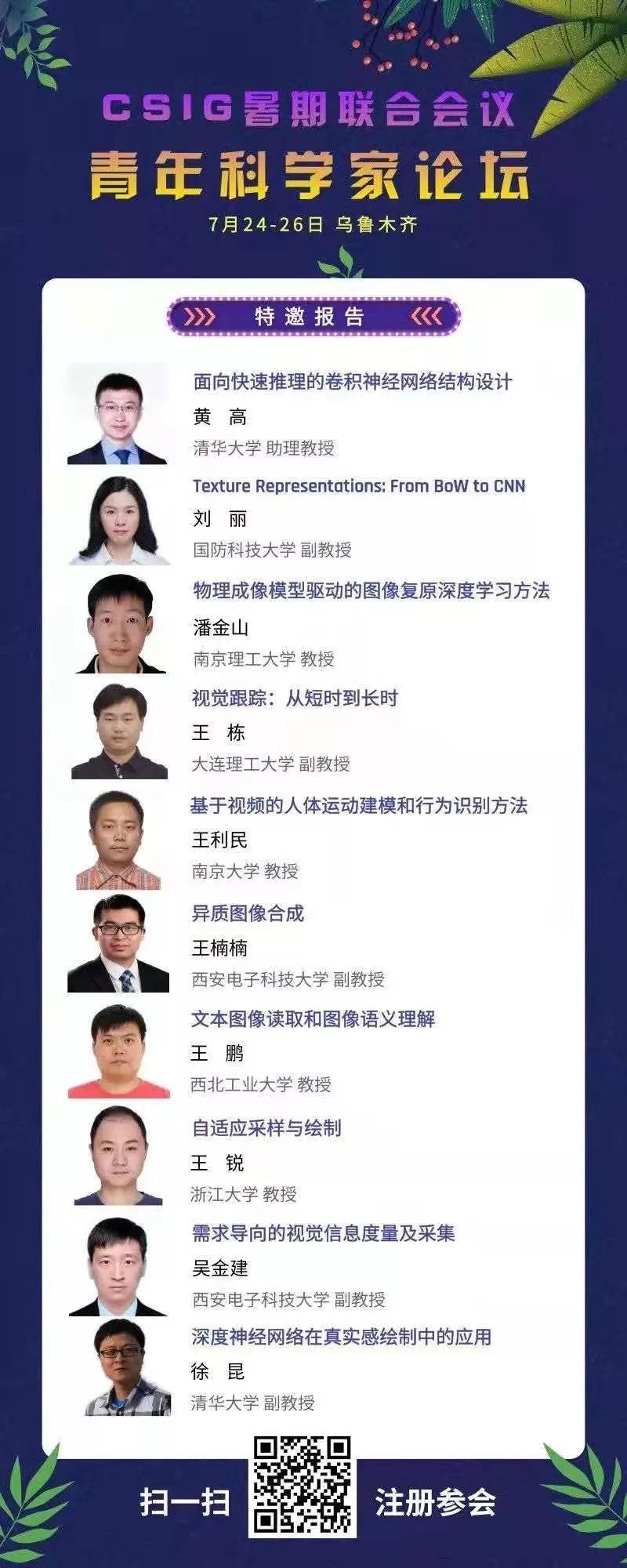 暑期联合会议是由中国图象图形学学会青年工作委员会、女科技工作者委员会、成像探测与感知专委会共同发起的暑期联合学术会议,涵盖“青年科学家论坛”、“女工委学术交流论坛”、“视觉感知与学习研讨会”。