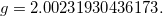根据物理学中的量子场论,我们可以从第一性原理计算出g的值: