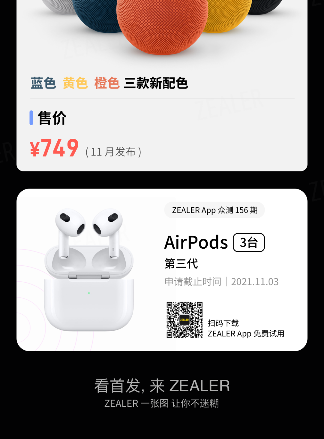 3 台 AirPods 3 上线 ZEALER 众测,全新支持空间音频,还有 30 小时超长续航!Apple 计算音频和 H1 芯片加持,带来突破性聆听体验。IPX4 抗汗抗水,即便挥汗如雨,音乐也不能休止!扫上方二维码或戳左下角「阅读原文」即可前往申请。