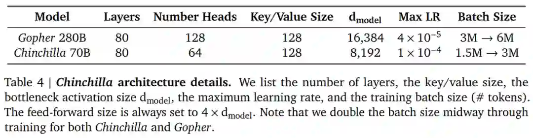 基于 DeepMind 估计的计算最优边界,他们预测用于训练 Gopher 的计算预算,一个最优模型应该是模型大小比之前小 4 倍,而训练的 token 应该是之前的 4 倍多。