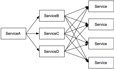 客户端一次用户点击行为往往会触发多次服务端请求,这是一次请求杠杆;每个服务端请求进而触发多个更底层服务的请求,这是第二次请求杠杆。每一层请求可能导致一次请求杠杆,请求层级越多,杠杆效应就越大。在多次请求杠杆反模式下运行的分布式系统,处于深层次的服务需要处理大量请求,容易会成为系统瓶颈。与此同时,大量请求也会给网络带来巨大压力,特别是对于单次请求数据量很大的情况,网络可能会成为系统彻底崩溃的导火索。典型恶化流程图如下图: