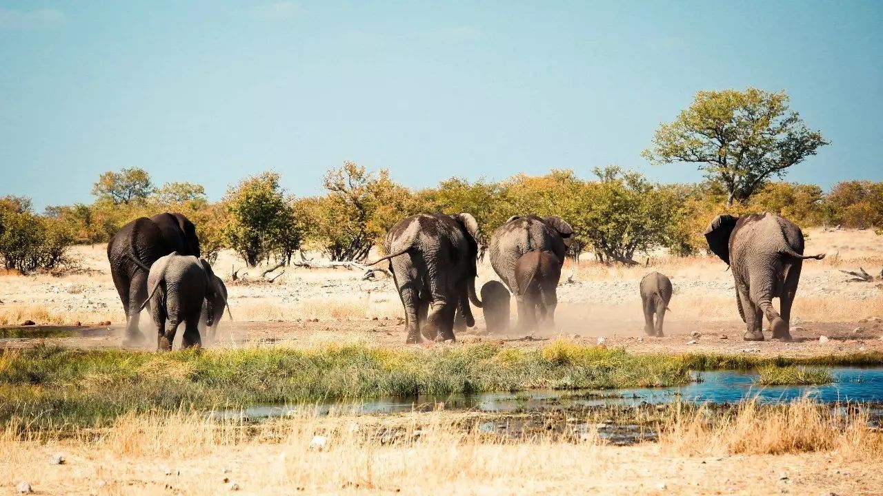 “北边,我们在野生动物国家公园里自驾Safari和大象狭路相逢,在荒漠间四处寻找原始部落。”
