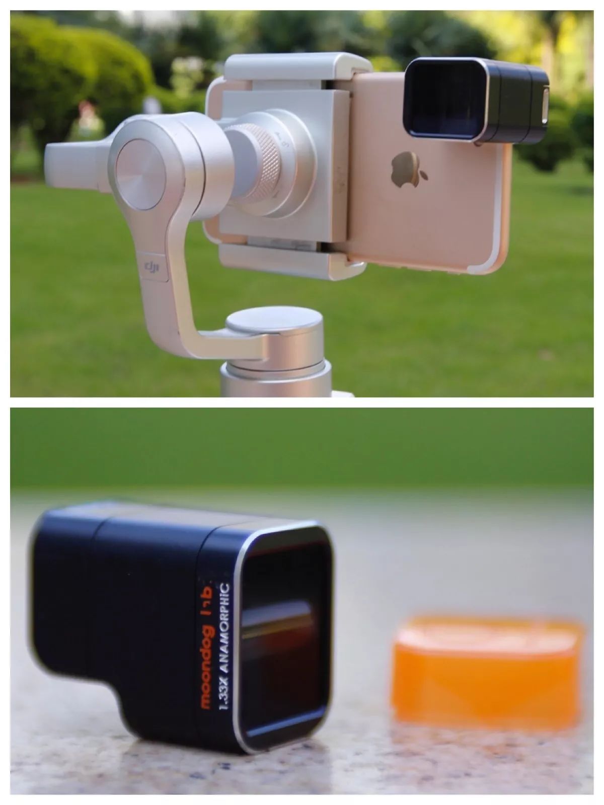 大马克对灵眸手机云台的使用方式更是升级了一个“段位”——软件上用FiLMic Pro视频拍摄App,硬件上给手机搭配Moondog增广镜。