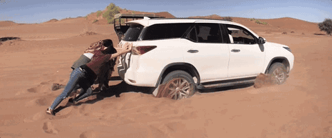 大马克一行人明明知道“前路凶险”,却仍一致决定冒险体验一把沙漠越野:“没想到果然成全我们了,车子陷进去完全动不了,我们全部人下来推车,推到腰酸背痛,那种感觉那个场景,实在太难忘太特别了。”