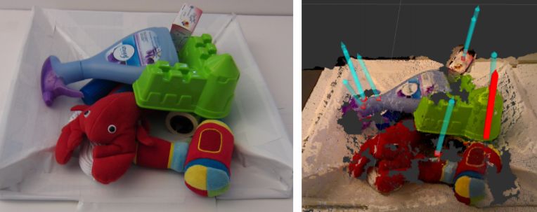 AGILE GRASP 左图:实际场景 右图:点云和算法找到的抓取pose