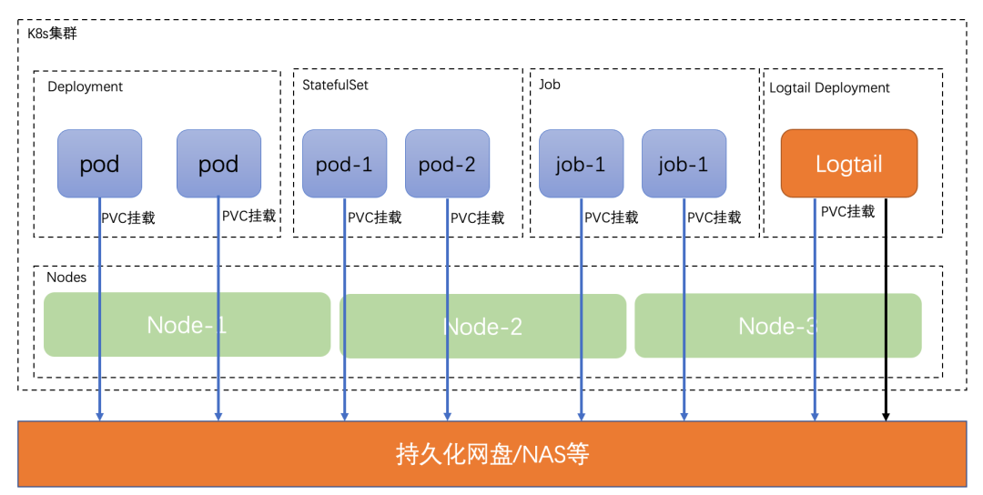 Deployment方式:当业务容器用PVC挂载日志目录或者需要全局连接API Server获取K8s元数据等场景,可以选择在集群中部署一个单副本的iLogtail Deployment进行数据采集。