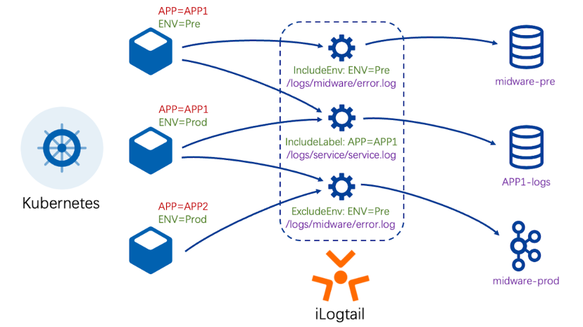 iLogtail提供了业务容器实时动态发现能力,并支持通过K8s元信息(例如Label、环境变量等)进行采集过滤。特别是一些短Job场景,比如一些机器学习的训练任务,生命周期只有几分钟甚至几十秒,也提供了全面的友好的支持。