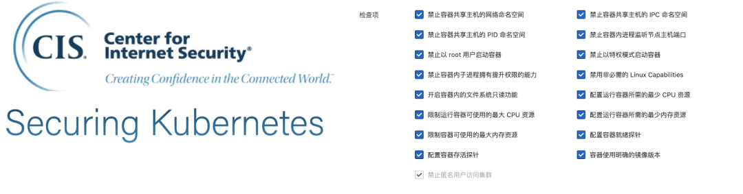 基础架构安全:基于CIS kubernetes benchmark指导安全部署;依赖K8s的安全体系,建立细粒度的访问控制机制。