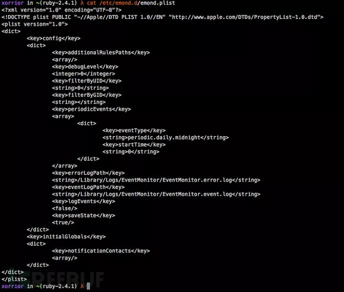 emond是一个普通的守护进程,每次系统启动时都会由launchd执行,其对于launchd的配置文件和其他系统守护进程在同一个地方:/System/Library/LaunchDaemons/com.apple.emond.plist,该配置文件决定了何时执行emond,并带有LaunchDaemons经常使用的任何期望的选项。 emond.plist配置文件位于/etc/emond.d/目录中。该文件定义了规则路径,UID/GID过滤,错误日志和事件日志路径以及一些其他选项。