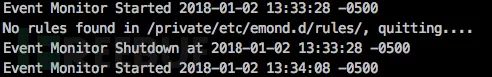 把plist文件放进rules目录后,emond错误日志会显示服务已启动,emond也不会提示说找不到任何规则。