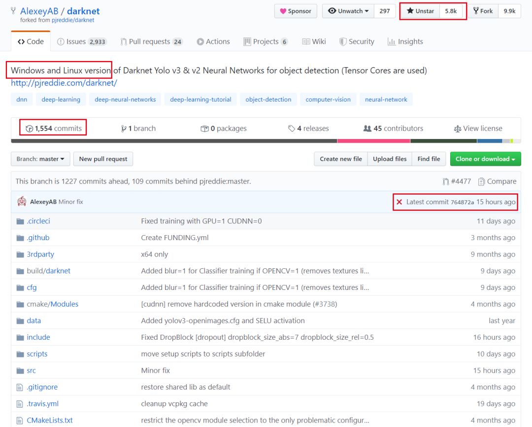 本文的主人公也叫darknet,因为它一开始就是从原版fork来的。目前该项目在github上已获得 5.8k star,这个数量也相当之高。