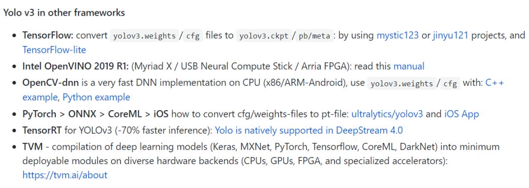 本项目分享并实现很多其他版本的YOLOv3项目,如TensorFlow、OpenVINO、TensorRT等。