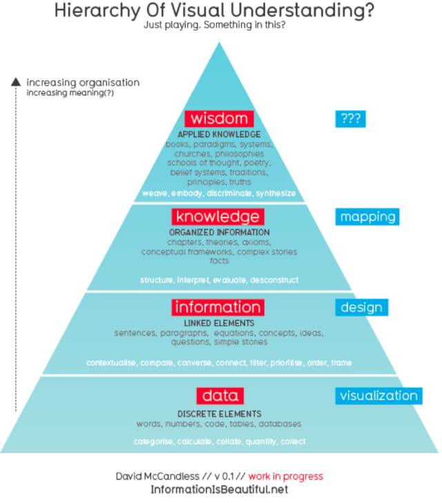 信息收集后,我们会将这些转化为自己的知识。如果我们将这些知识应用到实践中,比如说写文章或者解决问题,最终这些都会转换为我们自己的智慧。