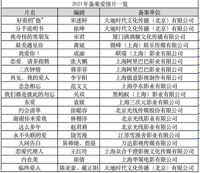 嘴上说爱情片生意到头了,手上却没停过爱情片的立项。